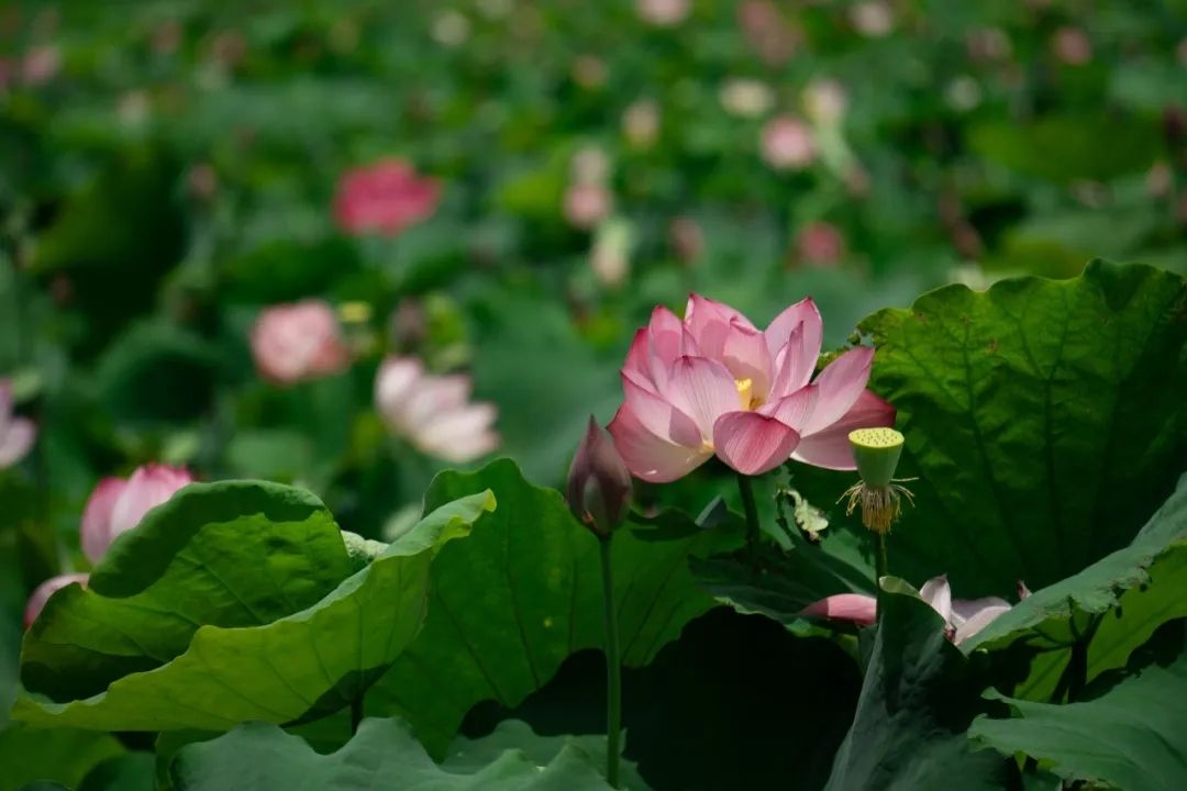 荷叶如碧盘铺满水面,层层叠叠,绿意盎然。微风拂过,荷叶摇曳,荷花轻舞,送来阵阵清香。水中鱼儿嬉戏,荡起层层涟漪。蓝天白云倒映在水中,与荷塘美景相映成趣。