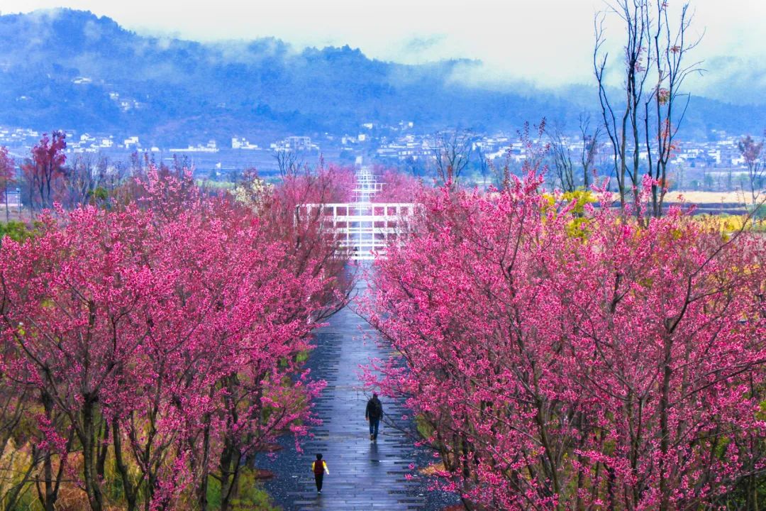 跟随澜沧江,昌宁县右甸湿地公园的樱花大道,在春雨过后嫣红了更多。