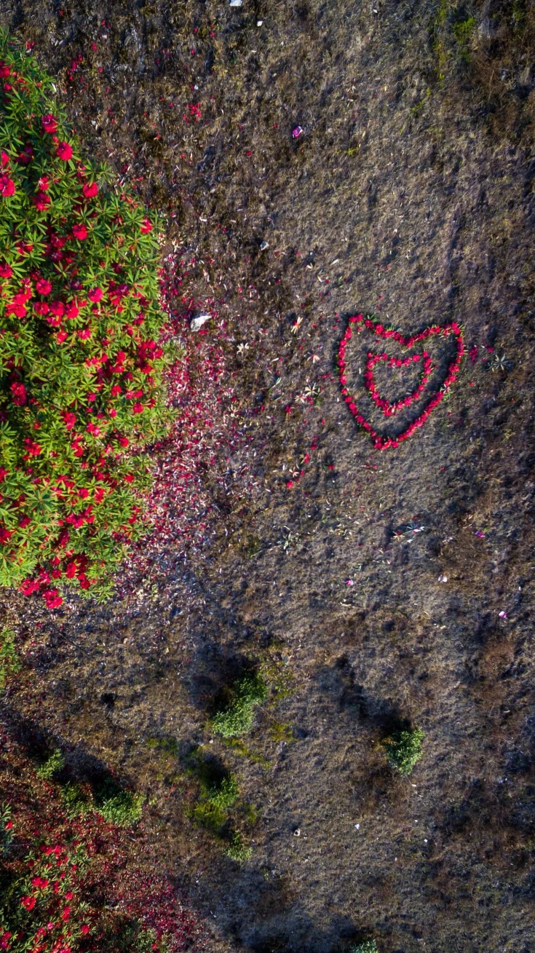 小黑山上散落的大树杜鹃花拼成一个爱心