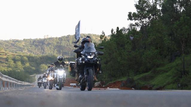 东山彩虹公路上的骑行车队