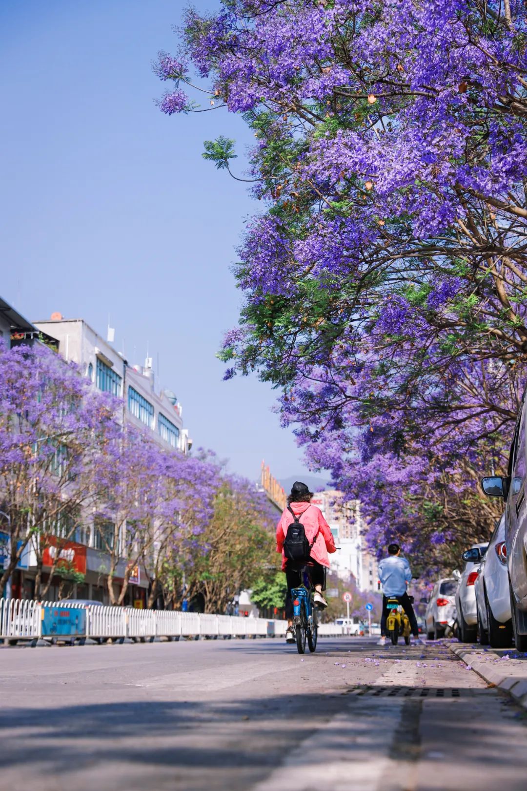 盛夏时刻,人民路的蓝花楹正是绽放的时候,紫蓝色海洋宁静而深远。