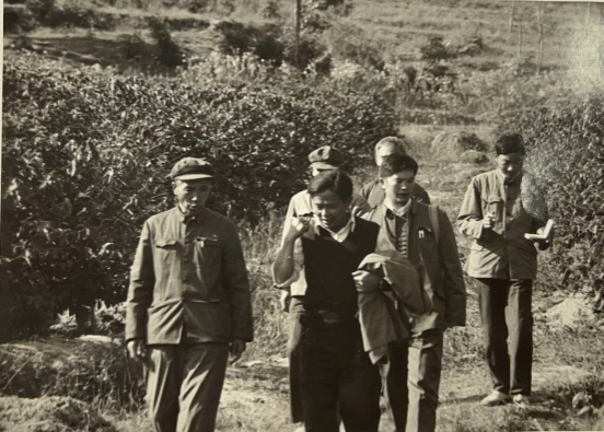 1985年,杨善洲到潞江农场考察小粒咖啡生产种植情况(隆阳区档案馆馆藏照片)