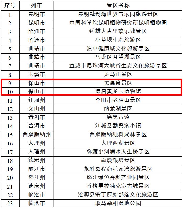 关于云南省2023年国家4A级旅游景区拟确定名单的公示