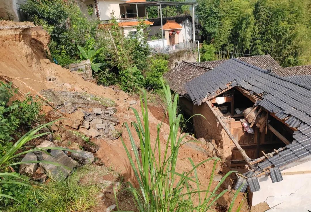 7月5日16时,一场强降雨过后,龙陵县象达镇朝阳村收到群众反映,发现尹家田组一户房屋后缘边坡陡坎处出现裂缝、挡墙发生变形。据尹家田小组长岳发和介绍:“我来到的时候这个裂缝有两公分左右,越来越大,肉眼可以看见它明显地在增大。”于是他立刻拨打了位于裂缝正下方且外出干农活的杨正杰电话。“小组长打电话给我,叫我快点回来看一下,看着不行了,裂缝裂得特别大。”受灾群众杨正杰回忆道。裂缝发生后,岳发和当机立断,迅速组织下方群众转移,并且专门安排人把一位88岁的老人也转移了出去。就在把老人转移出去后几分钟的16 时 30 分,随着一声“轰隆隆”的巨响,边坡发生滑坡,约 140 立方米的滑坡体瞬间将房屋后墙、房顶冲毁。受灾群众杨正杰心有余悸地回忆道:“一下子看到房子弄坏了,很心疼、难受。还好是发生在白天,如果是晚上塌方,人都没有了。”