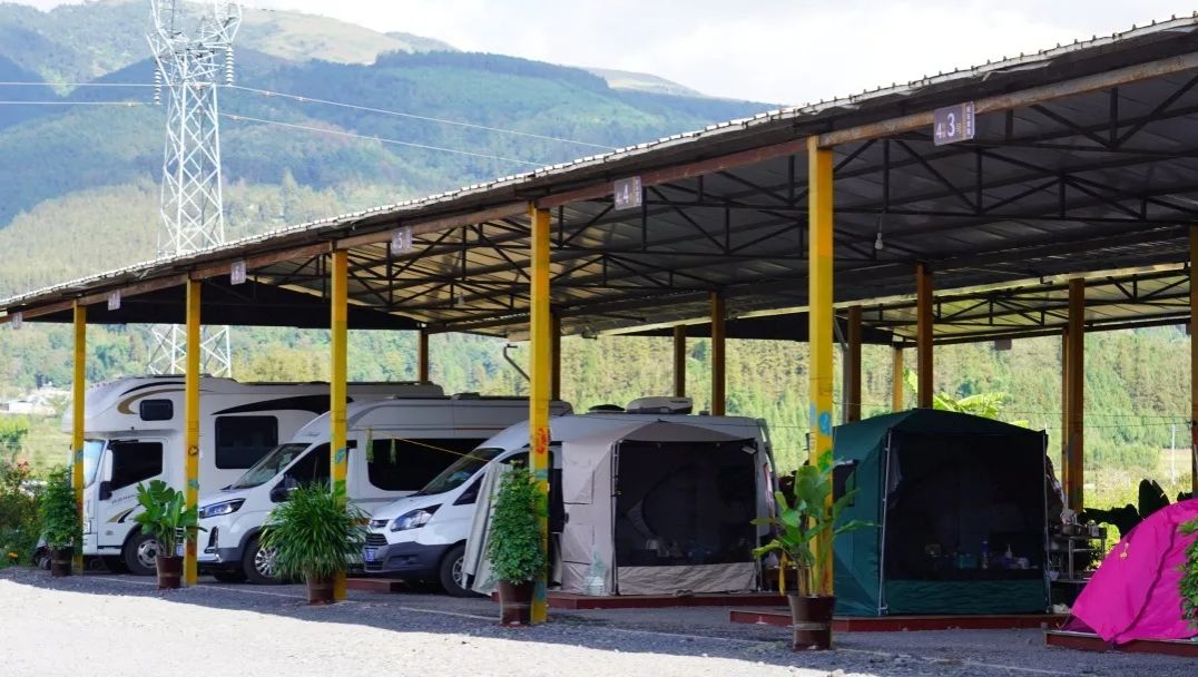 目前G219房车露营地占地规模15亩,提供水电、卫生间、淋浴、冰箱、洗菜盆等生活设施和旅游向导服务,营地门口有超市、餐馆,附近还有温泉、采摘等项目可体验,预计一年能创造约二十万元的经济效益。
