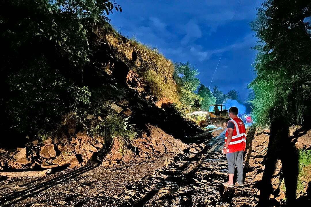 抢险人员争分夺秒,一组采取“人机协作”高效模式,挖掘机主攻大面积塌方,同步细致清理边角路障、疏通排水沟渠;另一组在拥堵路段及周边关键节点加强劝导疏导,清晰指引绕行路线,全力保障现场秩序井然与人员安全。各组力量紧密协同,经过一个半小时的高效处置,受阻路段全面恢复畅通。