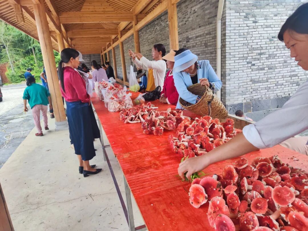 箐口村12.6万亩森林为野生菌生长提供了得天独厚的条件,孕育着奶浆菌、大红菌、牛肚菌、鸡枞等30余种可食用野生菌,年产量约6万公斤。2022年,箐口村党总支创新探索“包山捡菌”模式,同步建成野生菌交易市场、规划采菌体验路线、引进烘干加工设备,通过模式创新、市场规范运营与村民诚信经营,箐口野生菌口碑持续提升,吸引了周边及更远地区的客商与食客,连续四年实现野生菌交易额超200万元。此外,村党总支牵头举办的“与菌相约”野生菌文化节,更让野菌产业迈上新台阶。从第一届到刚落幕的第三届,文化节始终热闹非凡,不仅设有歌舞表演、采菌大赛、浑水摸鱼等特色活动,更让游客亲身参与上山捡菌的乐趣。这场集文化展示、趣味体验、知识普及于一体的农产品文化节,年均吸引游客2.4万余人次,带动文旅收入约14万元,成为推动乡村振兴的有力引擎。