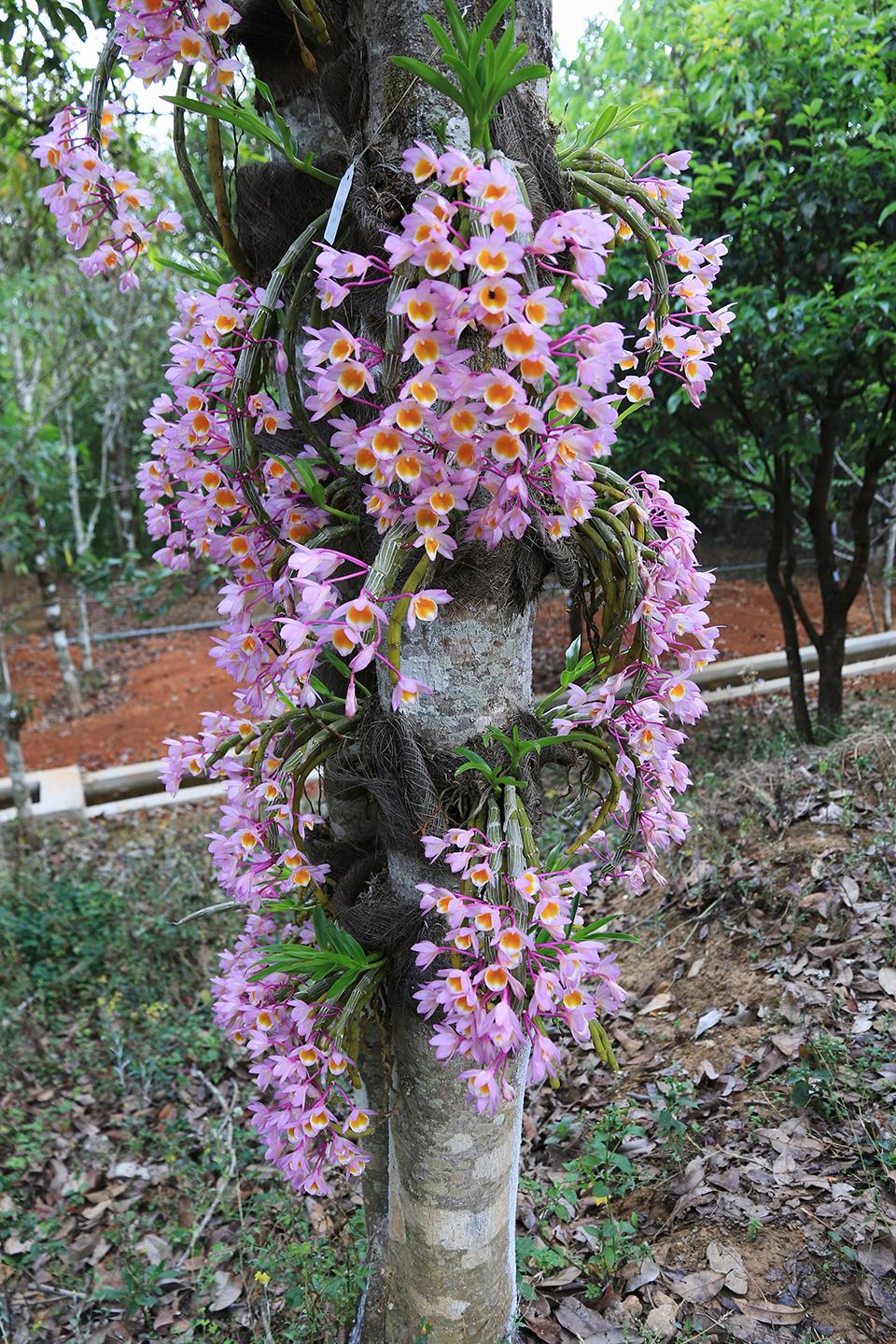 时值4月暮春时节,走进体育买球手机网址龙陵县石斛研究所“花园式”的种质资源保护研究中心,不同品种的石斛花陆续开放,省林业和草原科学院与该所技术人员正围在树旁对石斛花进行品种鉴定。
