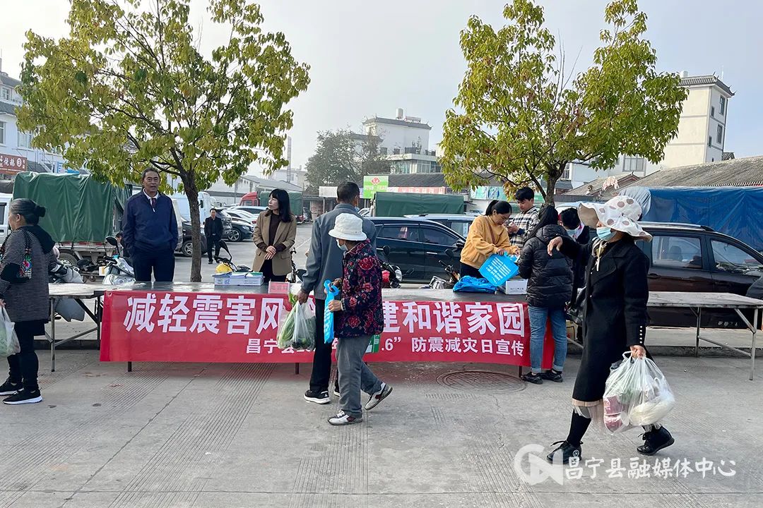 11月7日,昌宁县在县城南小区集贸市场开展防震减灾宣传周活动,普及防震减灾、避险和自救知识,切实提高广大人民群众的防震减灾意识。