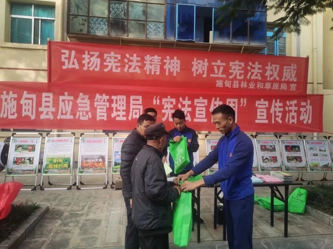 县林草局结合当前重点工作,在宪法宣传日联合县应急管理局开展了宪法宣传及“防灭火”主题宣传活动。精心制作展板17块,循环播放《云南省森林防火条例》音频,发放《云南省森林防火条例》《云南省草原防火条例》《施甸县人民政府关于2024年度森林草原防灭火工作的通知》等资料500余份,在水墨施甸平台发布“强支书喊话”第七十期森林防火专题,让“土味家乡话”宣传森林防火的重要性,树牢“防灭火工作人人有责”的法治思想。