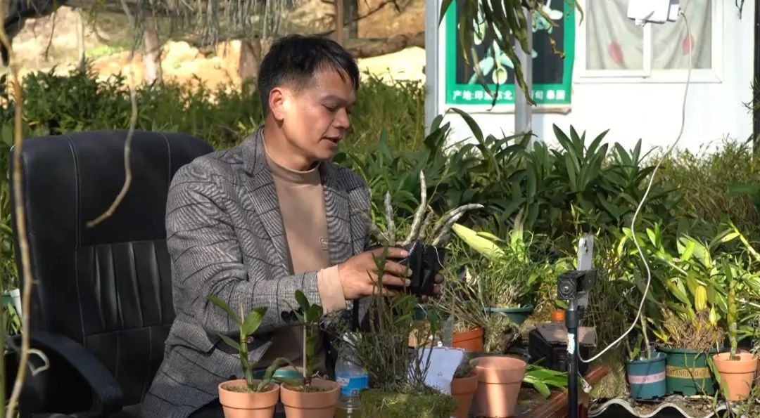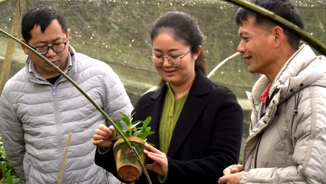石斛花卉种植户杨汉从最近是人逢喜事精神爽,去年三月份以来在技术人员的指导下,他陆续成功解锁了石斛花卉新品种研发技术,共繁育的12个品种3000多株石斛花卉长势良好,有的已经打着花包,这让一直从事老品种花卉种植和销售的他感到非常惊喜。