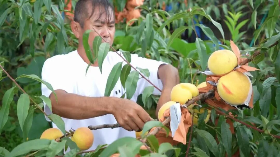 种植户李堂正忙着采摘黄桃